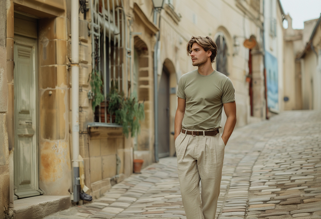 If you're tucking a shirt into a pair of light-colored slacks, slip on a decoratively-tooled belt with a fancy buckle to set yourself apart from the cubicle dwellers. Overall just be sure that every outfit includes at least one detail which has to be deliberate, and not just a product of what was clean that morning.
