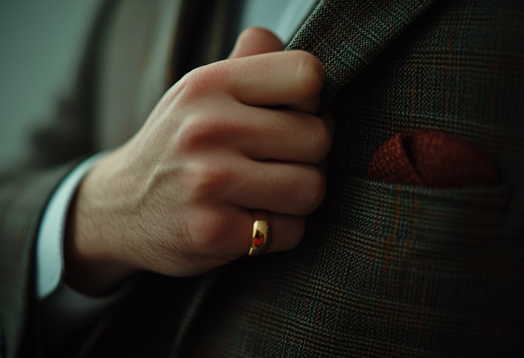 Your pinky ring should feel like an extension of your outfit, not a random addition. For example, a gemstone pinky ring in a dark color like onyx or garnet pairs well with formal and semi-formal attire, while a simpler, minimalist pinky ring complements casual wear.